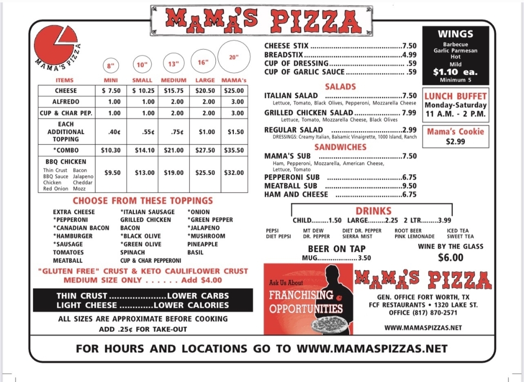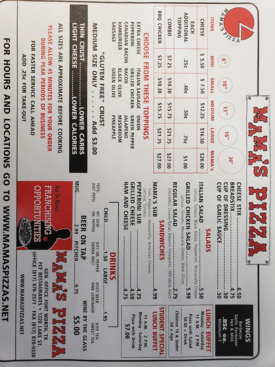 Whether you’re dining in or grabbing a quick takeout, Mama's Pizza promises an unforgettable flavor that will keep you returning for more.